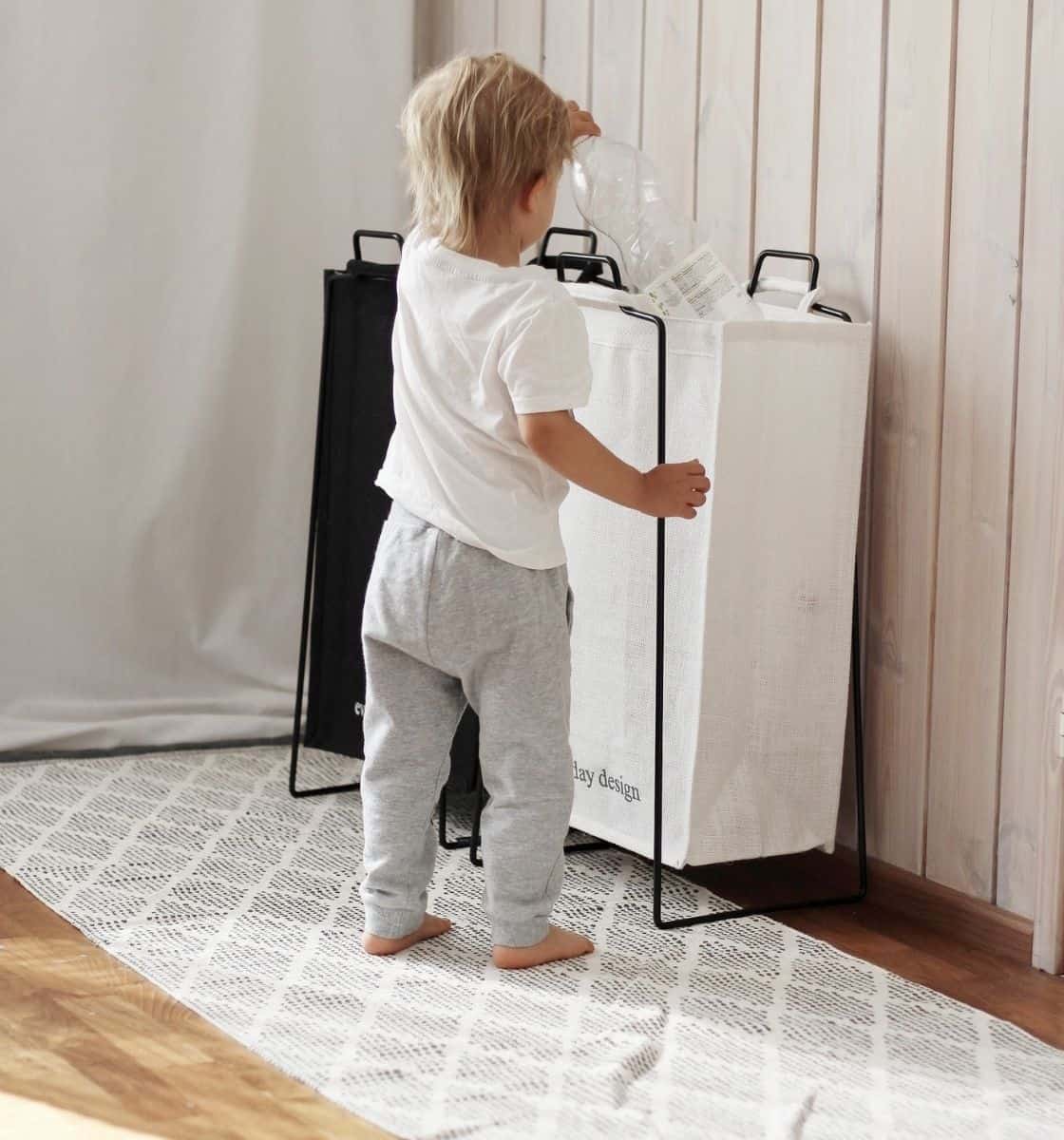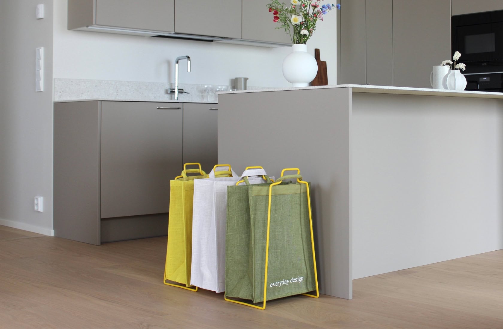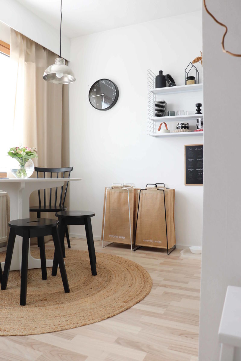 "Etsimme kotiin sopivaa ja katseen kestävää systeemiä kierrätykseen. Everyday Designin telineillä saamme loistavasti kierrätettyä paperit, pahvit ja pullot kierrätykseen. Kauppareissulla tyhjennys kierrätyspisteelle ja paluukyydissä tulee kauppaostokset samoissa kasseissa kotiin. Käytännöllistä ja tyylikästä."