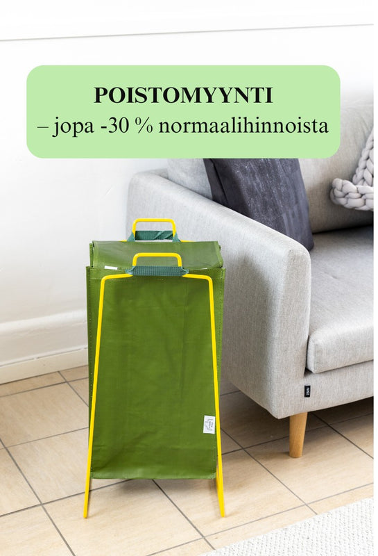 "Kierrätykseen kartongeille, pulloille ja lehdille. Tilavia ja huomattavasti tyylikkäämmät kuin sekalaiset edeltäjänsä. Suosittelen, jos kaapistossa ei tilaa kierrätykselle ja/tai kierrätyspistettä ei löydy heti pihalta. Telineiden kotimainen valmistus oli tärkein hankintaperuste, suosittelen!" - Tarja 3/2021