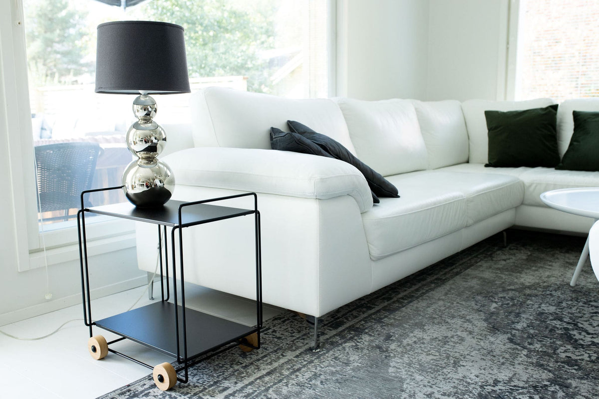 Näppärän kapea tarjoiluvaunu menee pieneen tilaan, mutta tarjoaa riittävästi tilaa monenlaiseen säilytykseen ja tarjoiluun.